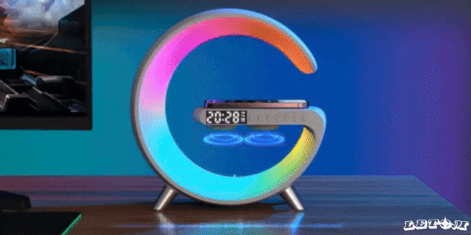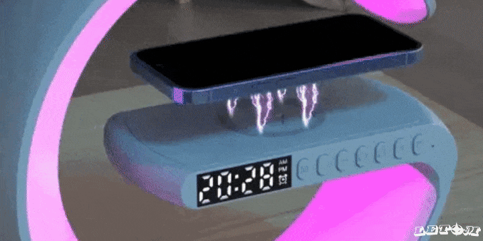 Cuenta con base de carga rápida QI. Además, cuenta con amplias entradas de cable para conectarla donde quieras, y una APP para controlar la iluminación.